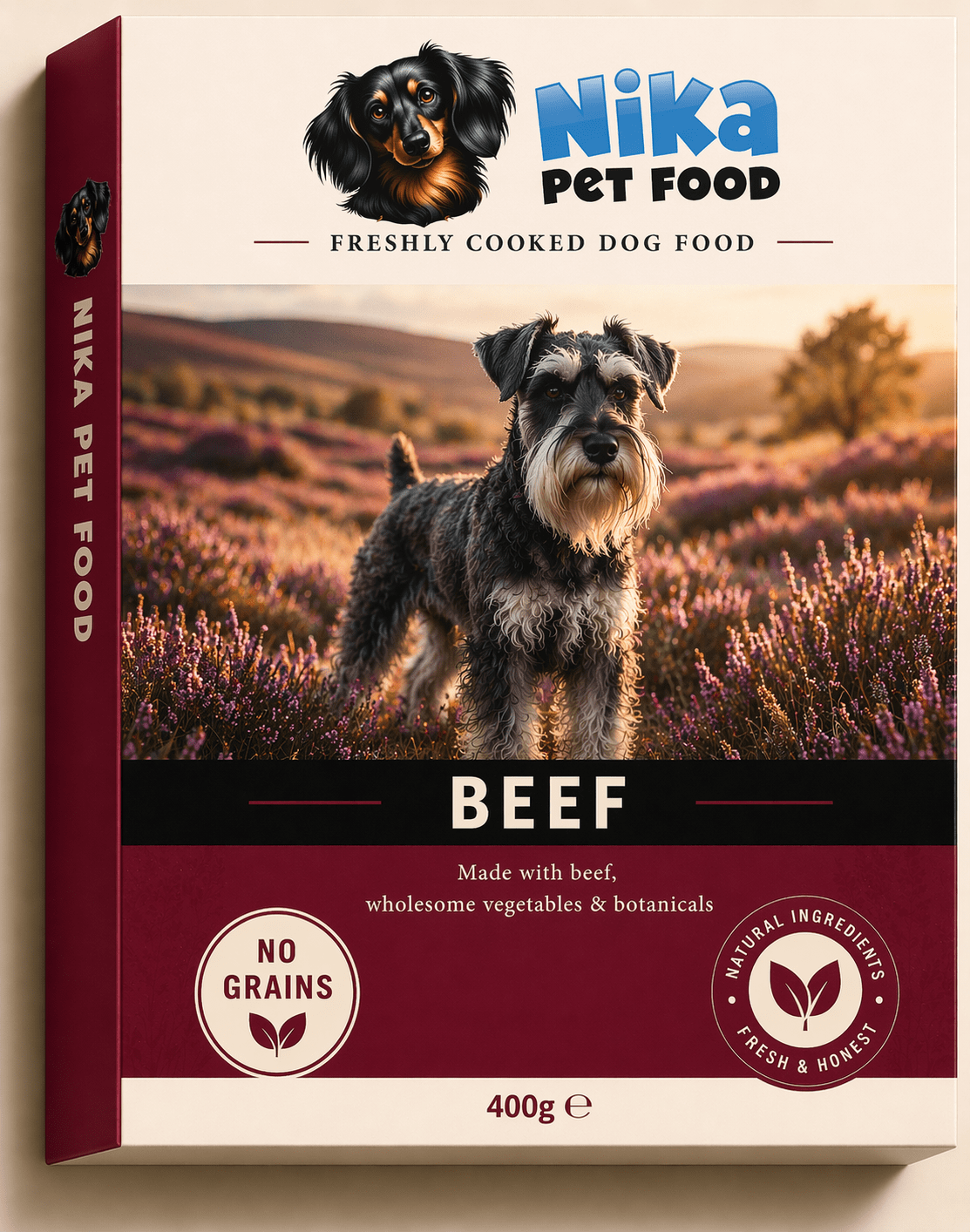 Freshly cooked beef dog food rich in high-quality protein to support strength, condition and steady energy, made with simple, honest ingredients and no unnecessary additives or fillers.