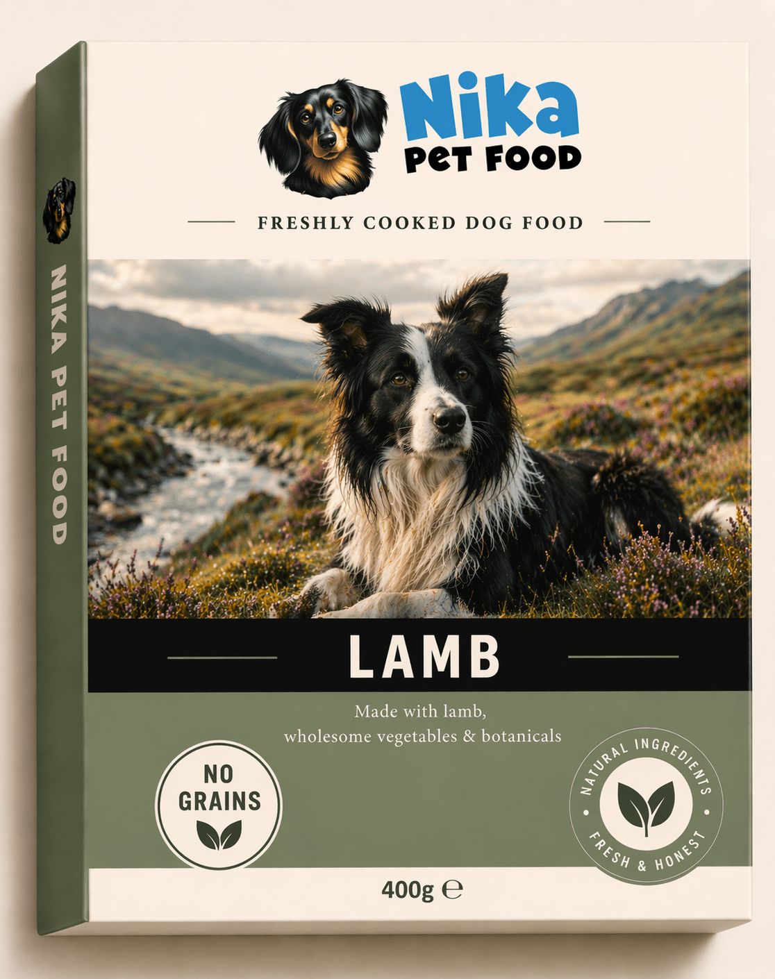 Rich, freshly cooked lamb dog food made with lamb, offal, vegetables and eggs. A hearty, grain-free recipe that delivers high-quality protein, natural nutrients and honest nourishment without additives or preservatives.